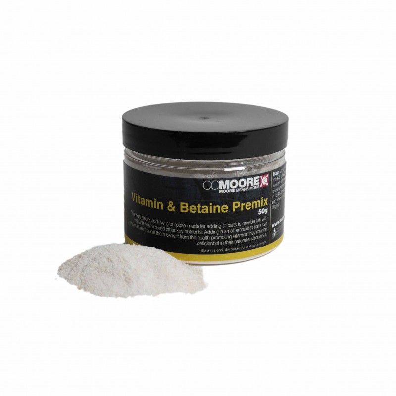 This vitamin and betaine premix is a heat stable bait additive, which is purpose-made for adding valuable vitamins and other key nutrients to boilie and hookbait mixes. It is recommended for use at up to 10g/kg in boilie and hookbait mixes and is also very effective dissolved in water or liquids which are then used as a bait soak.